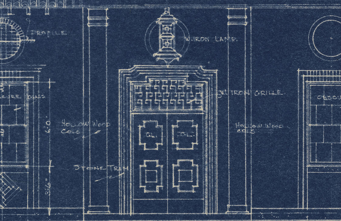 Blueprint of the building permit of the lodge hall for the Chinese United Dramatic Society, 1940.