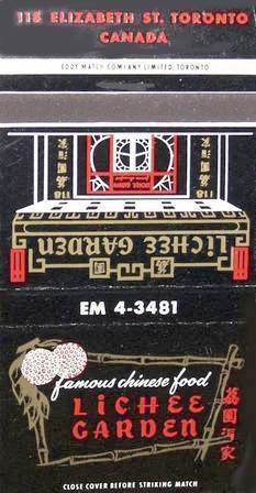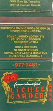 Lichee Garden Restaurant matchbook at 595 Bay Street. Comp. John Chuckman. Photograph. Chuckman’s Photos on WordPress. WordPress, 28 June 2014. Web. 7 Apr. 2015.
